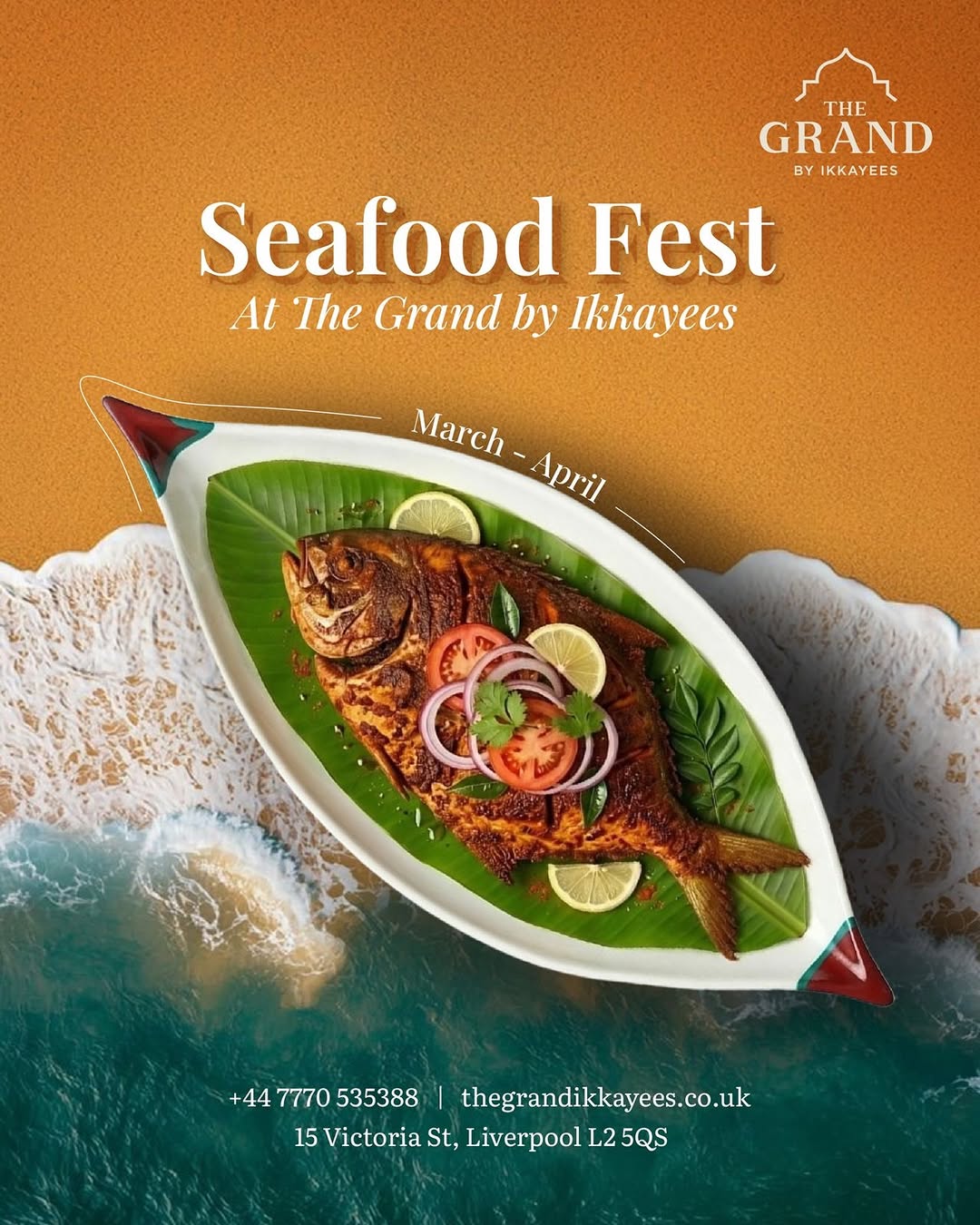 If you’re searching for the best seafood experience in Liverpool, there’s one place that’s creating a buzz among food lovers — The Grand by Ikkayees. Known for its authentic Indian flavors and fine dining ambience, this restaurant is now hosting a spectacular Seafood Fest that brings the rich coastal taste of Kerala straight to your table.